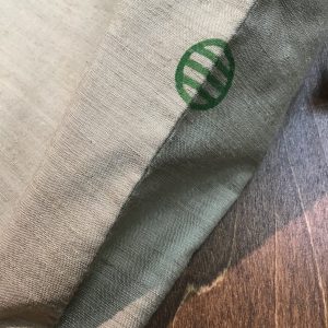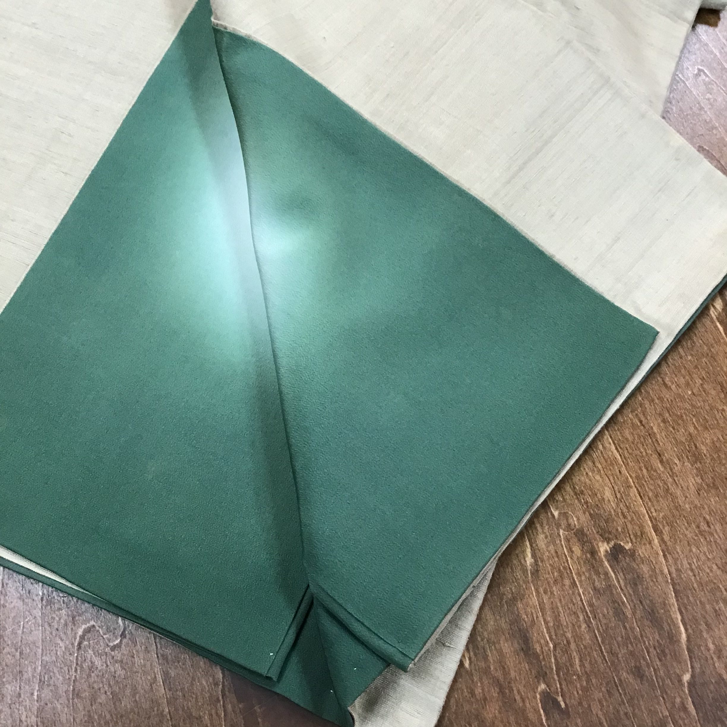 八掛と”丸に三ツ引き紋”を少し甘さのあるグリーンにして、渋いながらも可愛さのある着物ですよ。