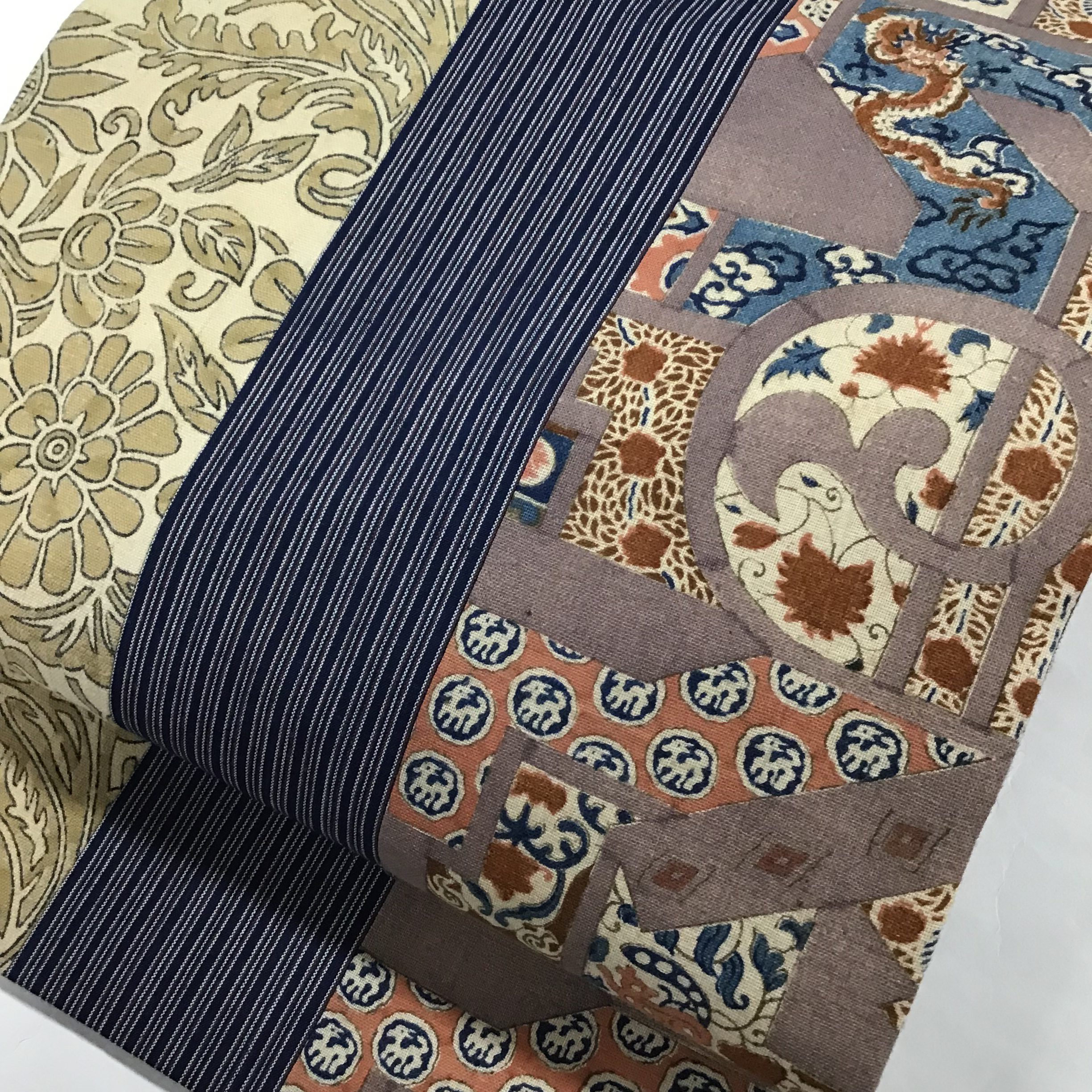 灯屋2創作の和更紗に唐山継ぎ帯を合わせました。(参考商品)