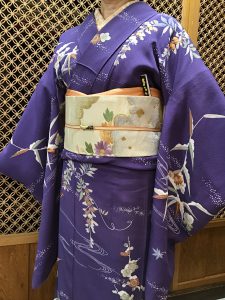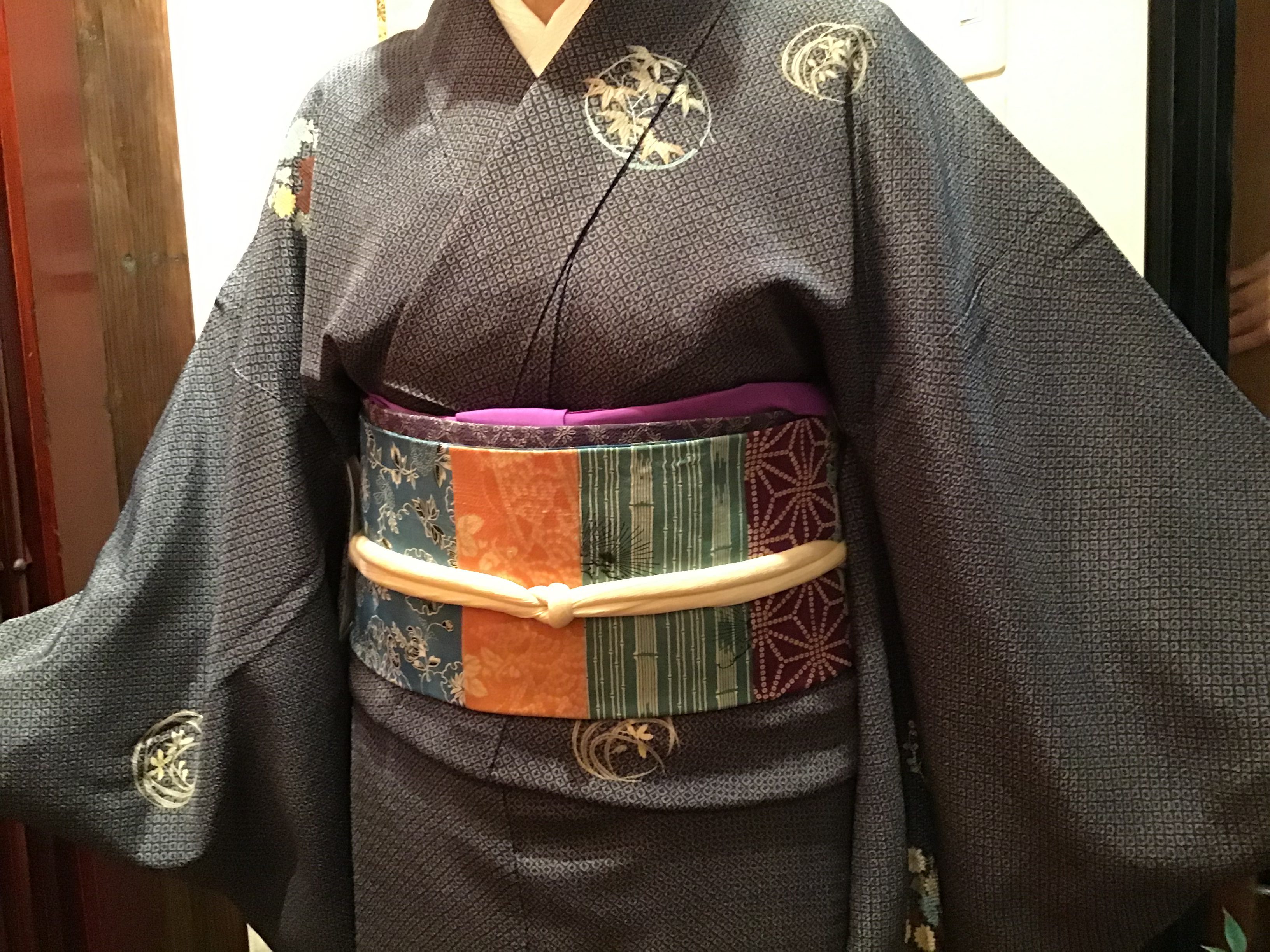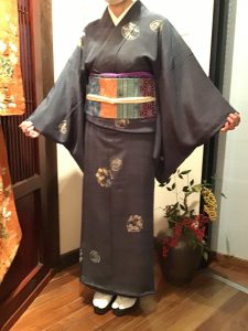 アンティークをお仕立て直しした、付下げ小紋に合わせて、また、美しい大人の装いです。