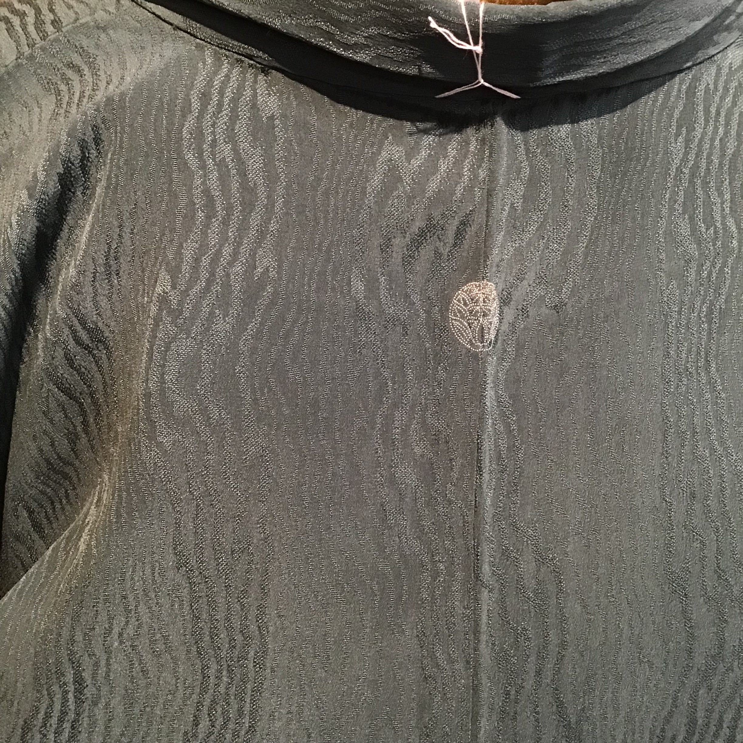 3ツ紋ですのでちょっとかしこまった装いにも、又は紋を現代的におしゃれなデザインと捉えてどんどんお召しください。