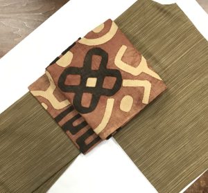 夏に向かう単衣は、明るい色や白っぽいものを選びたくなりますが、シックな色使いも、いいものです。