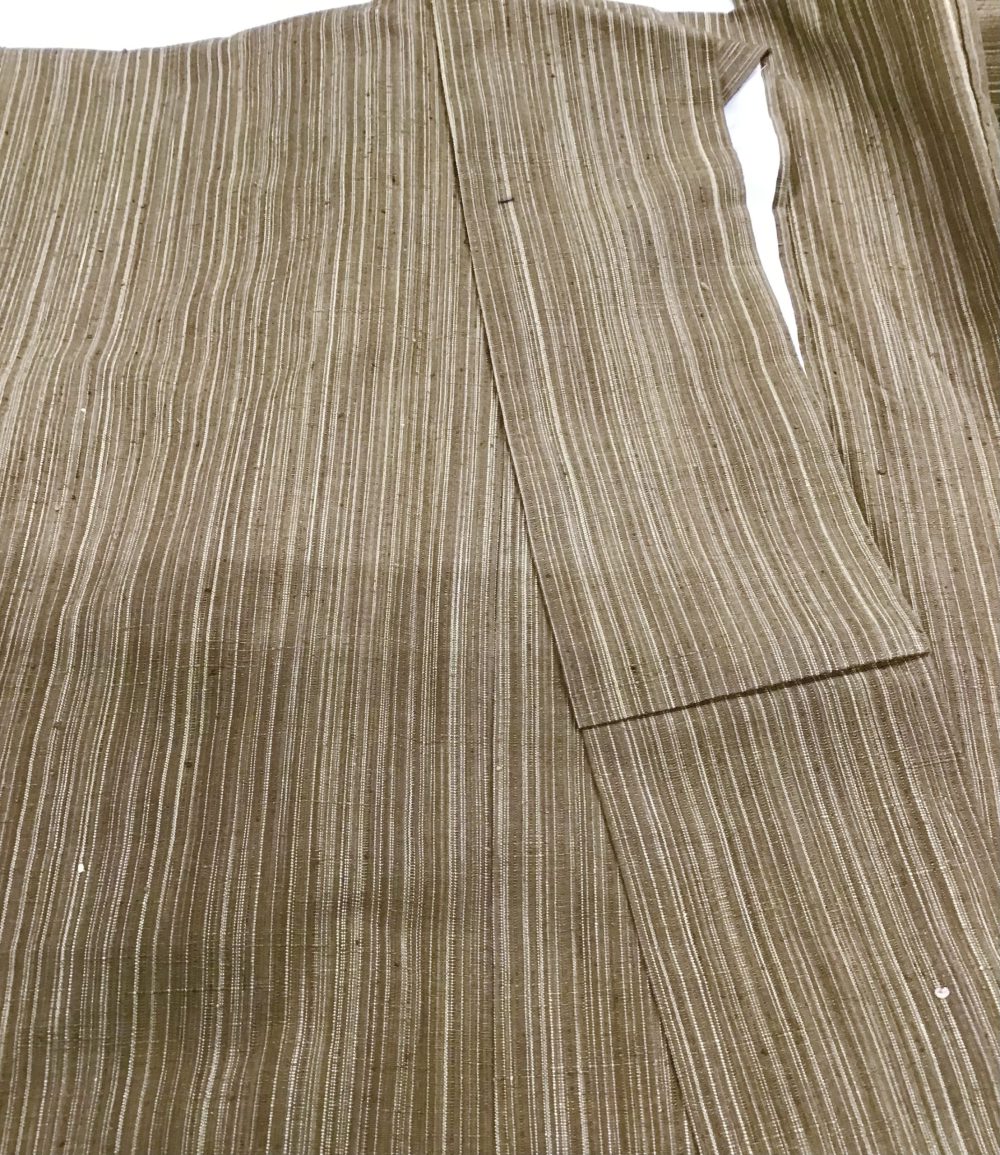 ①こちらは、ミルクコーヒー色の縞の着物です。