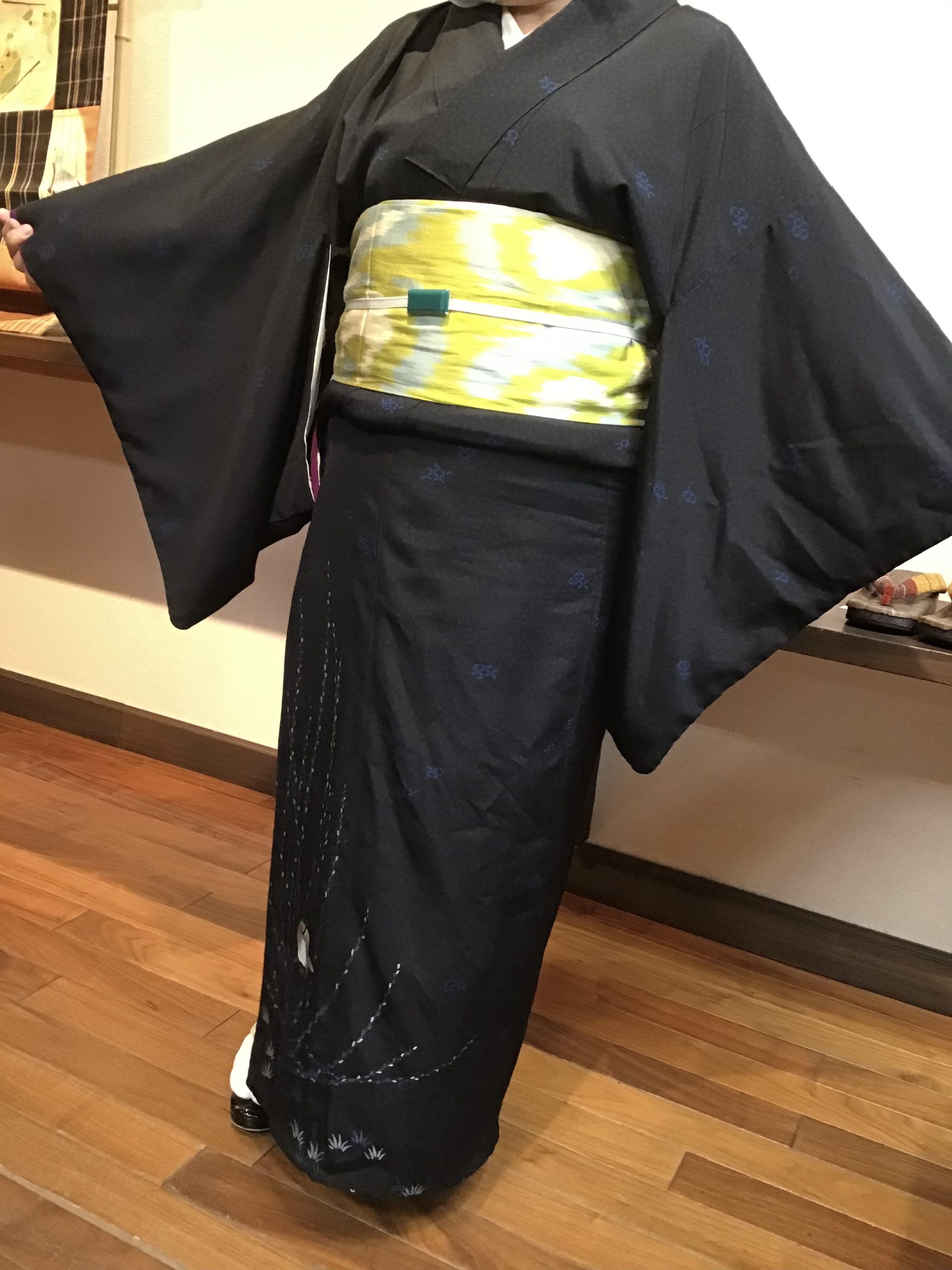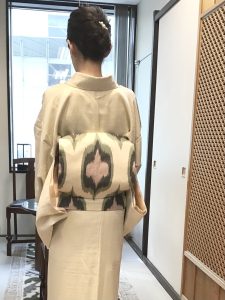 ウズベキスタンの大らかな経絣は、柔らかなお着物にも紬にも柔軟に応えてくれる