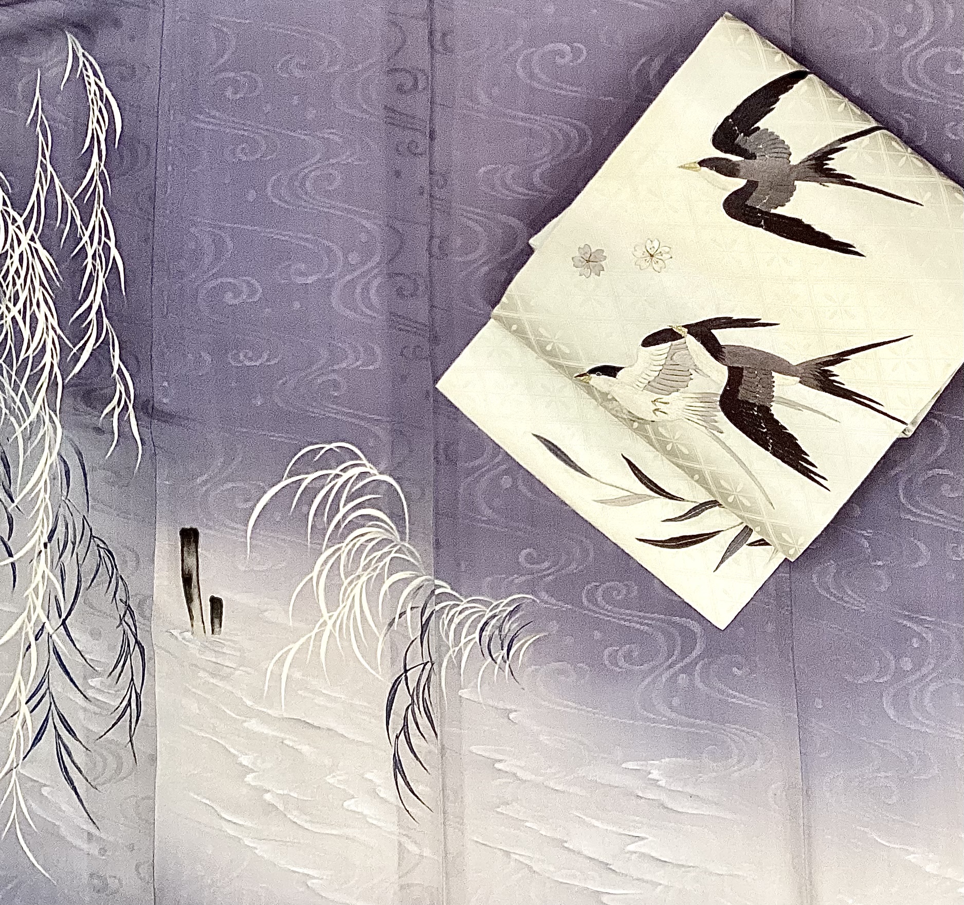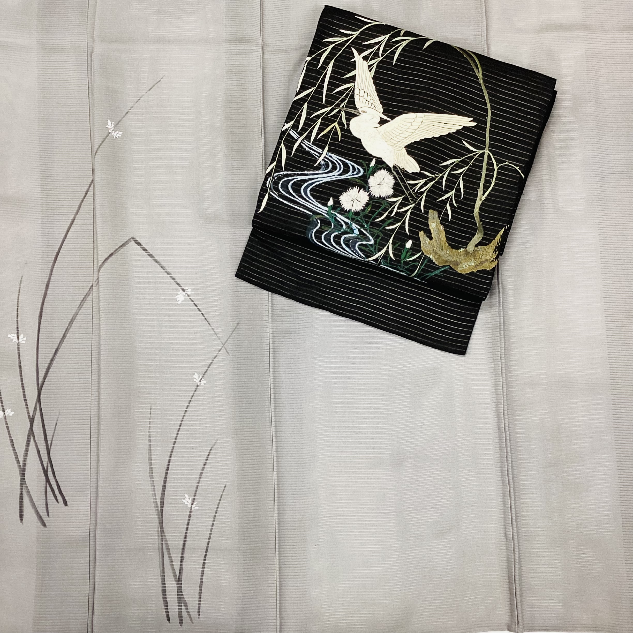 23−05−45 絽柳に撫子鷺の帯 132,000円 (全て税込)