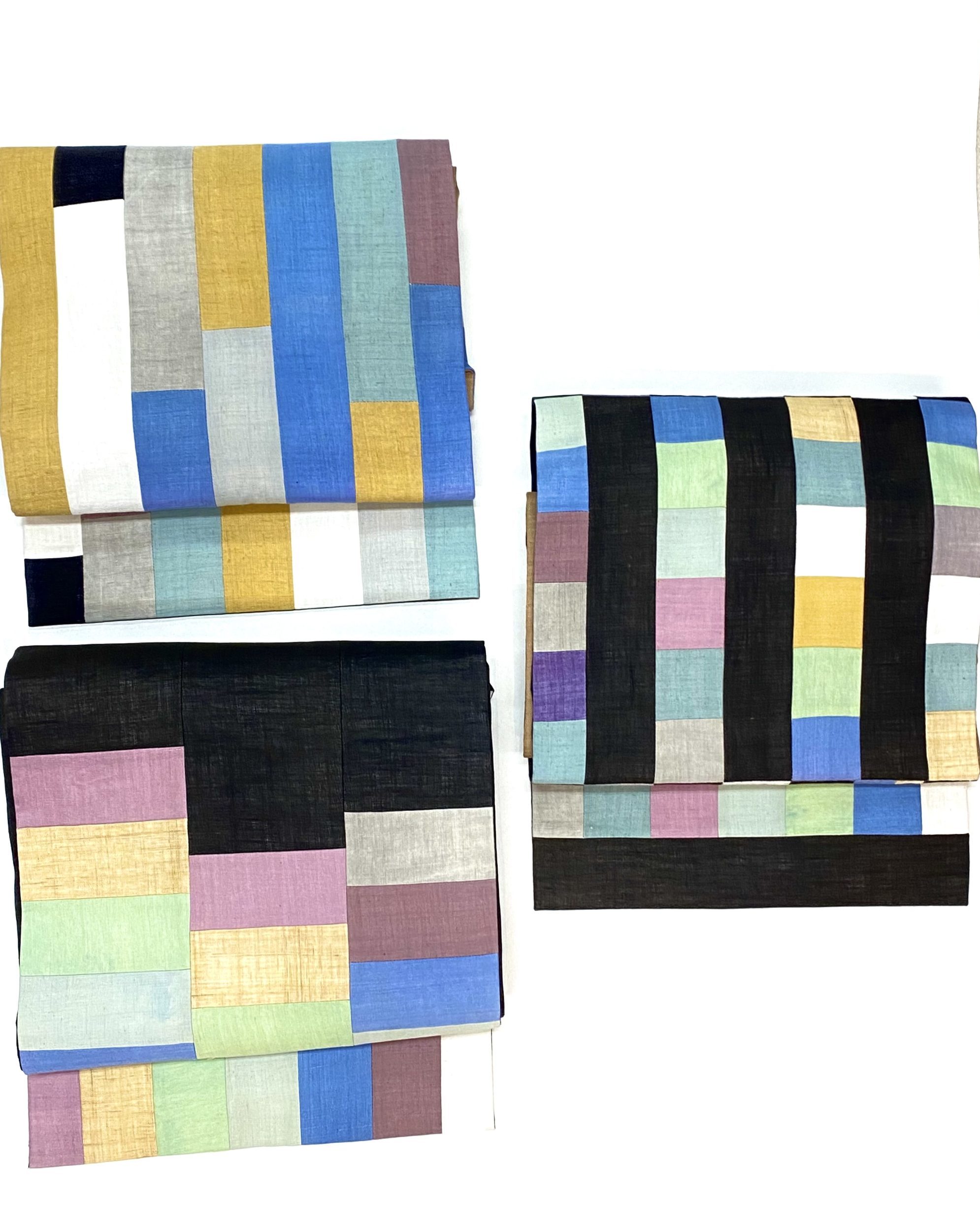 左下:22-08-10黒地入りポジャギ風の夏帯 120,000円(税込)