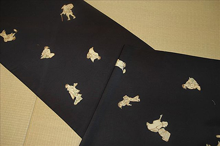 すずめやおじいさんの姿や顔がとてもかわいらしく、上品でさりげないのですが、おもしろ柄の楽しさも堪能できる、ちょっと通好みのきもの。