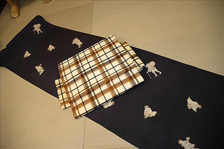 濃紺にはぴったりの茶系の格子の帯を締めて、自分にも道行くひとにも楽しい小紋になりそうです。