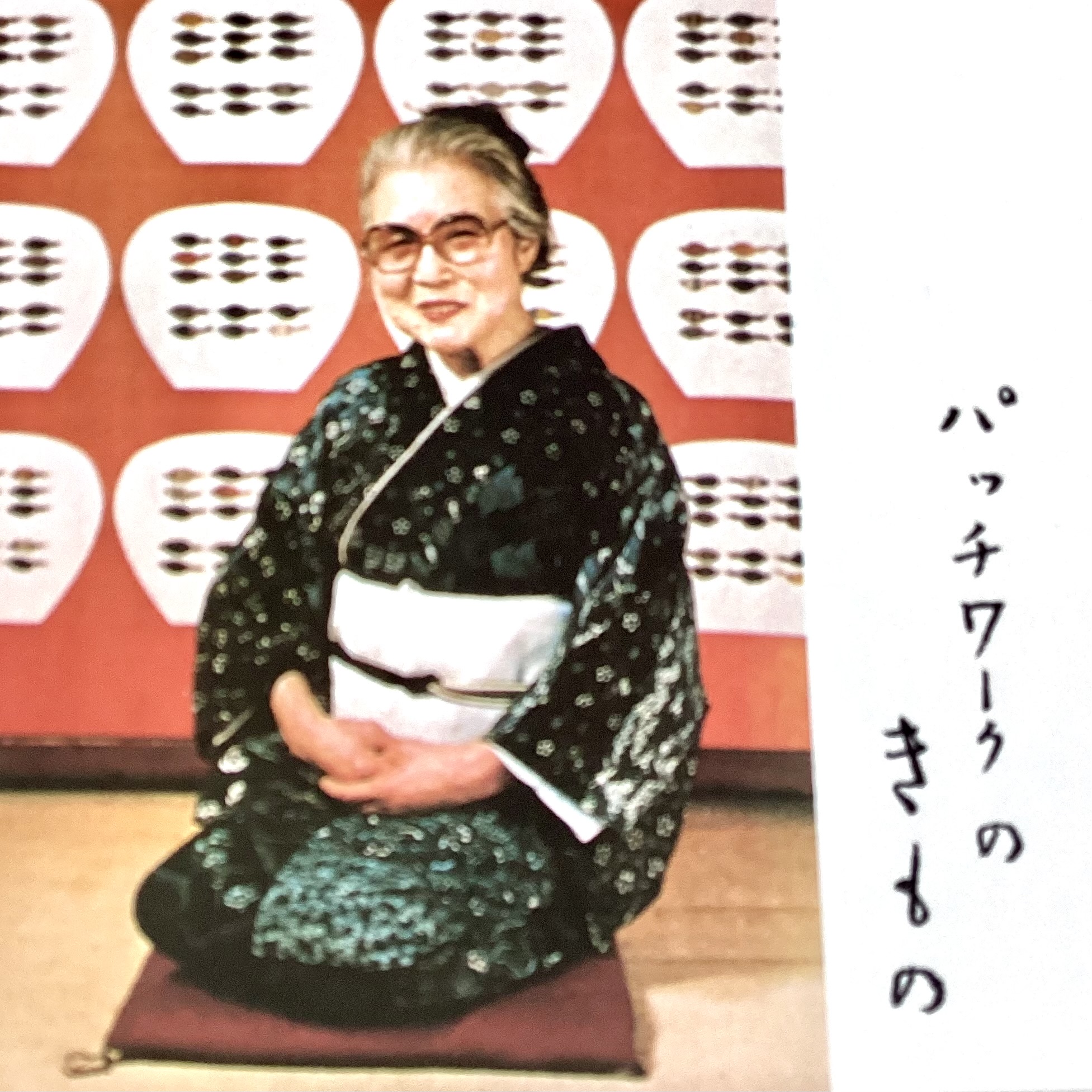 そしてなにより藍染の中形を切り継いだパッチワークの着物を着た宮脇さんを、灯屋のオシャレなお客様方に見ていただきたいと思いました(「私の創作アップリケ 藍に魅せられて」大和書房 1981 口絵からの引用)