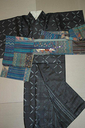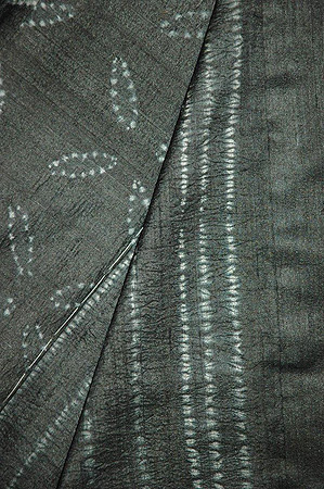 紬糸の墨色に手絞りをしたインドの布をお仕立ていたしました。