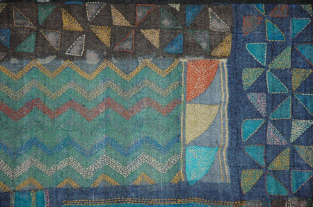 インド、ベンガル州(現・バングラディシュ)で生まれたカンタワーク、日本の刺子と同じく何枚かのサリーを重ね合わせるために刺子をしたのがはじまりとききました。