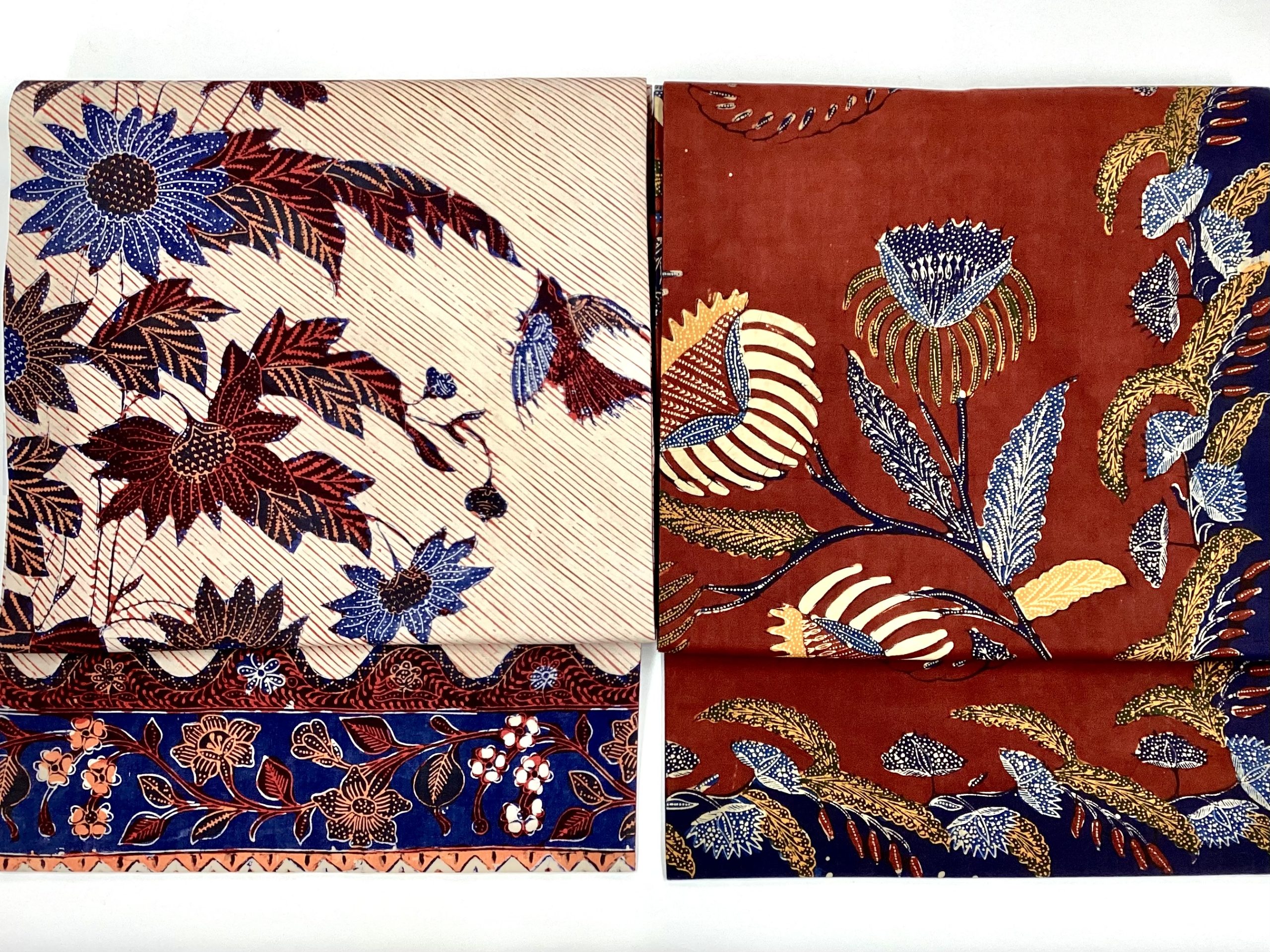 ジャワ島ソロのソガ染め。深みのある染めの美しさに小鳥の愉しいデザイン。