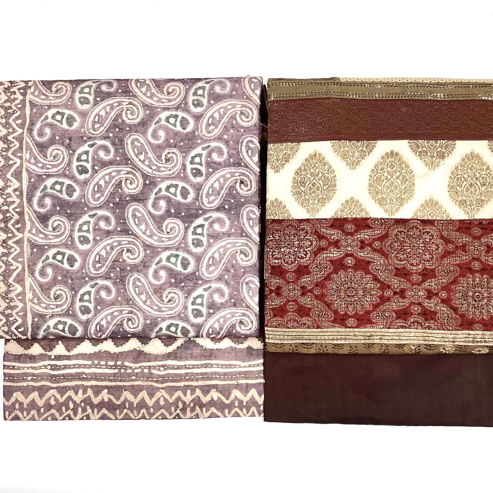 サリーをはじめインドの布から作った帯4点。