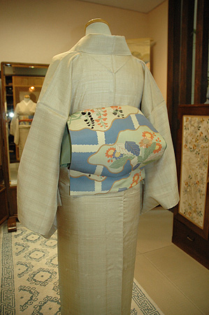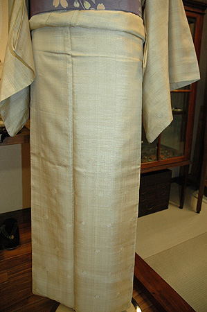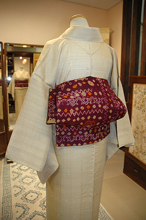 インドの野蚕糸から織りあげた薄いベージュのタッサーシルクの上品な光沢は、優しい色合いの和の帯から、個性ある東南アジアの帯までを柔軟に受け入れてくれます。
