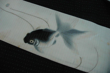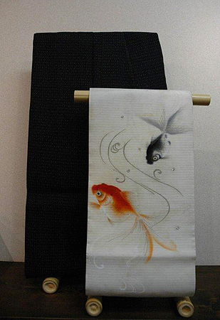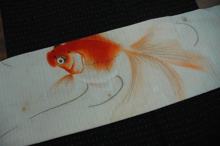 流水にきれいな朱赤と墨黒の金魚の帯が入荷しました。