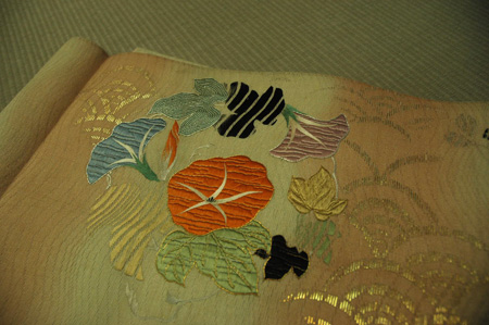 朝顔は大好きなモチーフで、ゆかたでも、ついつい目が追ってしまうのは朝顔の柄です。