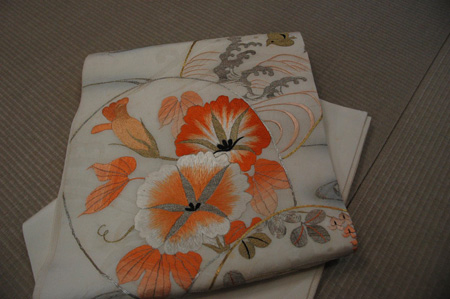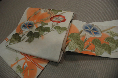 萩ぼかし朝顔刺繍名古屋帯 32000円朝顔づくし絽小紋 77700円