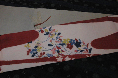 こちらの帯は盛夏の素材ではありませんが単衣用の昔の錦紗でとても薄いので、夏物にもいかがですか。