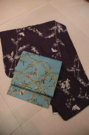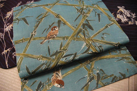 竹に雀の絽のお着物と名古屋帯が入荷しました。