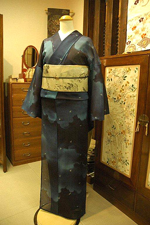 アンティークのきものや帯の柄にはストーリーがあり、この着物の空の色ひとつとってもいろいろな情景が想像できます。