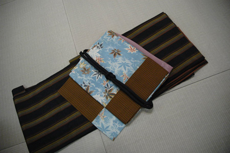 楓染め縮緬と黄八切継ぎ帯 58,600円