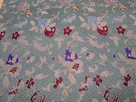 このように多彩な文様が入る美しい色の帯は、なかなか出会うことができません。