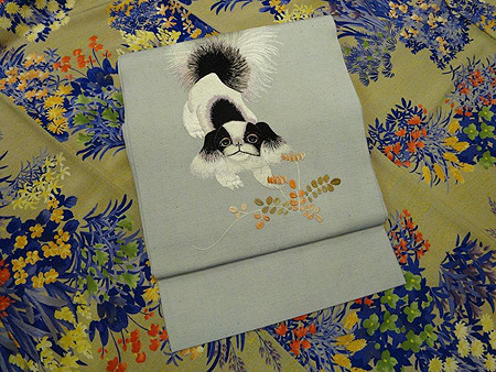 「狆とれんげ草」 コメントを残す 花畑で仔犬が、小さな春を見つけたようです。 うららかな春の気配をまとった、狆とれんげ草の刺繍が可憐でロマンティックな名古屋帯。 この帯のモチーフは、アンティークを写したすべて手刺繍の当店のオリジナルです。 暖かくゆるみはじめた陽気に、愛らしく見上げる狆の瞳もうっとりとねむたげで、こちらもつられてまどろんでしまいそうです。 狆とれんげ草刺繍紬名古屋帯 147,000円 花畑模様小紋 64,000円 身丈 4尺5分(約153.9㎝) 裄 1尺7寸8分(約67.6㎝) 松田