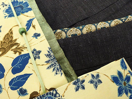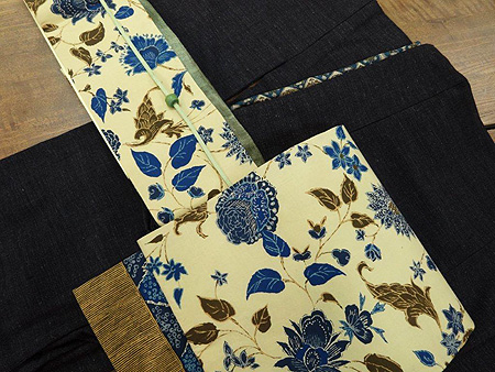 藍色の美しさでは引けを取らないバティックの帯、インド更紗の半衿を合わせてみました。