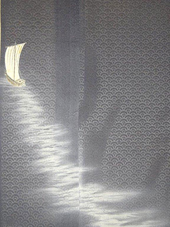 あわてみた着物は、ひじょうに凝った一枚、青海波紋紗織の三つ紋江戸褄模。