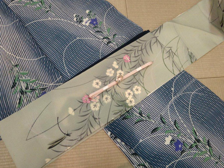 まだ夏の盛りに名残惜しさを感じながら、私も秋草模様の帯を締めはじめました。