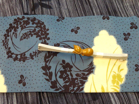 秋草名古屋帯に象牙瓢箪帯留
