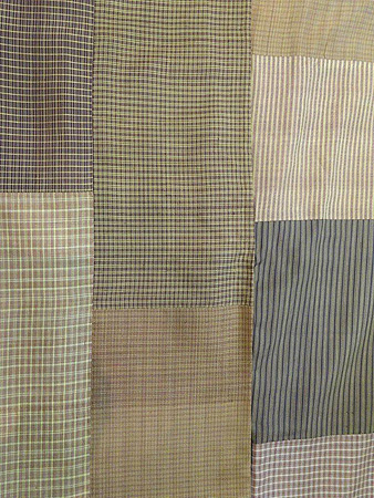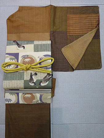 昔の黄八を52枚、端縫いした灯屋2の創作着物です。