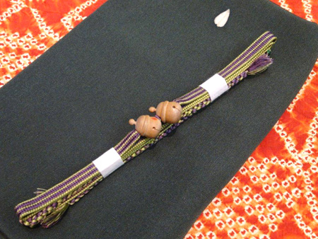 帯留は木製の鈴が愛らしく、楽しい音が聞こえてきそうです。
