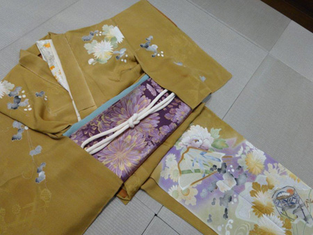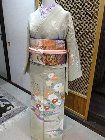 浅紫色菊模様丸帯 38000円