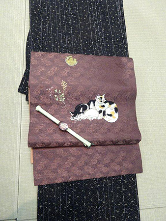 つがい猫の帯、梟の帯は、当店のオリジナル刺繍帯です。