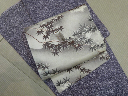 三日月に楓の図開き名古屋帯 (帯12-10-11) 54600円