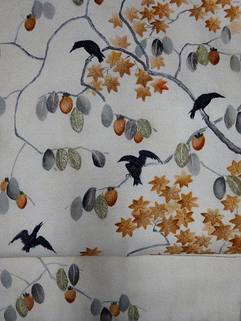 柿と紅葉とカラスの染刺繍名古屋帯 32400円