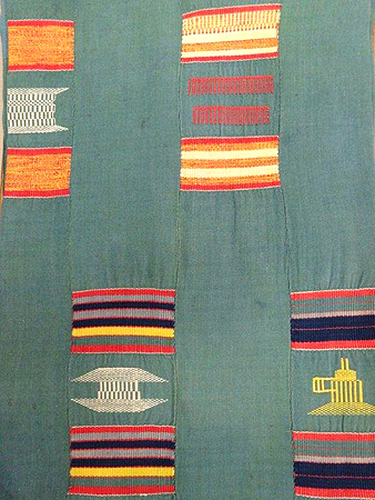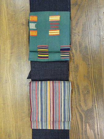 上の緑の帯は、アフリカはトーゴ、40もからなる部族のひとつエヴェ族の布を帯にお仕立てしました。