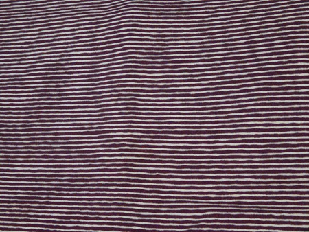 写真の着物はかすかによろけた海老茶の縞が印象的な小紋です。