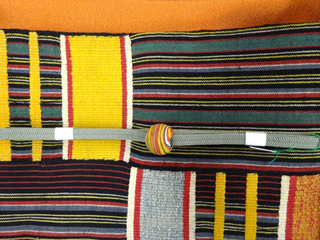 7色で織られたガーナ・エヴェ族のエヴェクロス名古屋帯は、見ているだけで愉しくなってきます!