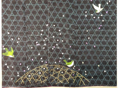 美しい刺繍で小鳥が楽しく飛びさえずっています。