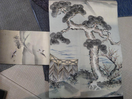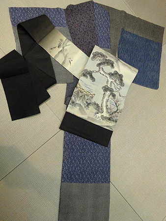 この切継ぎの江戸小紋と松の帯をご覧になって下さい。