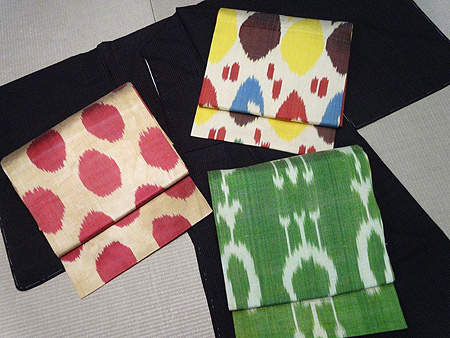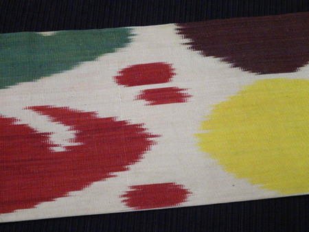 シルクロードの中継地であるウズベキスタンには、<アドラス>と呼ばれる日本の絣と同じような方法で作られた色鮮やかな布地があります。