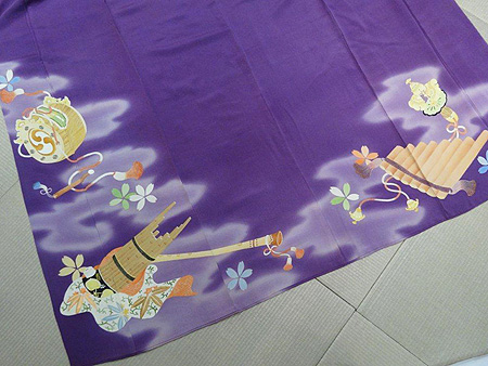 紫色に霞立ち、桜とともに描かれた楽器がとても雅やか。