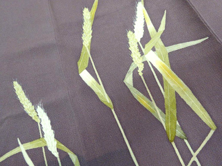 しなやかな縮緬が肌さわり良く、麦の穂の折れ曲がる様子も面白い、珍しい柄の付下です。