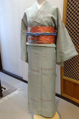 亀甲が赤く絣りだされて、幾何学模様のような雰囲気です。