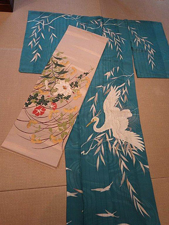 柳に白鷺が大きく描かれていて、ところどころに刺繍も入っています。