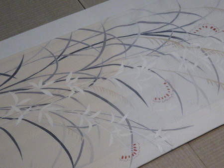 ご紹介の着物は、女郎花にすすきなので秋単衣に最適ですが、色も図柄も意匠化されていますので寛容にお召しいただいてもよいかと思います。