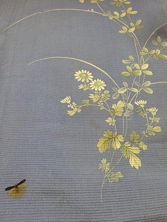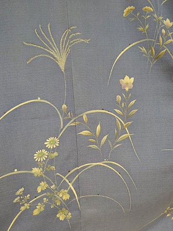 月に照らされ白く光る、野の草花が美しい、静かな中に華やかさのあるお着物です。