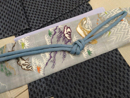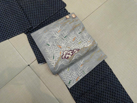細かな市松の絣柄がとてもお洒落な越後上布を合わせると、なんとも渋い組み合わせですが、格調高い江戸帷子に隠された粋が、浮き上がってくるように思えます。