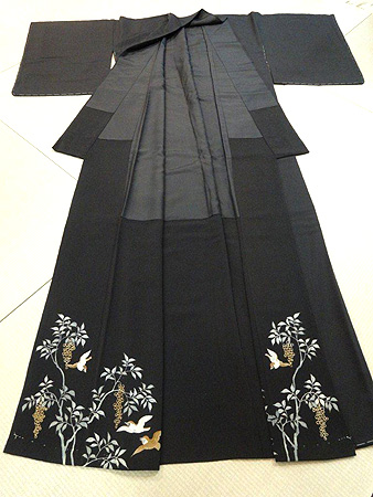 南天と雀の八掛け黒無地袷 (着物15-9-47) 135000円